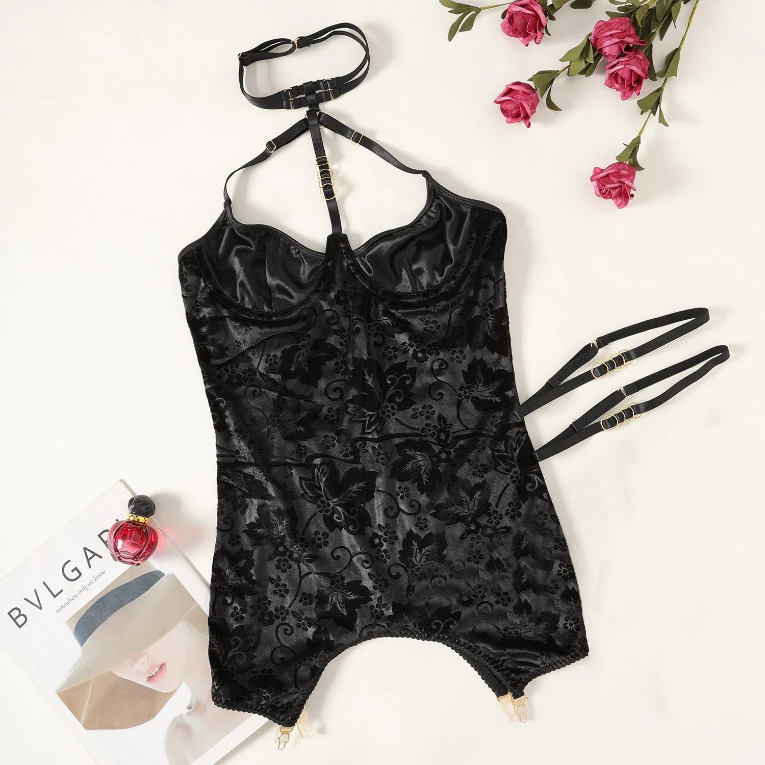 • Zmysłowa koszula nocna z chokerem i delikatnym wzorem kwiatowym
