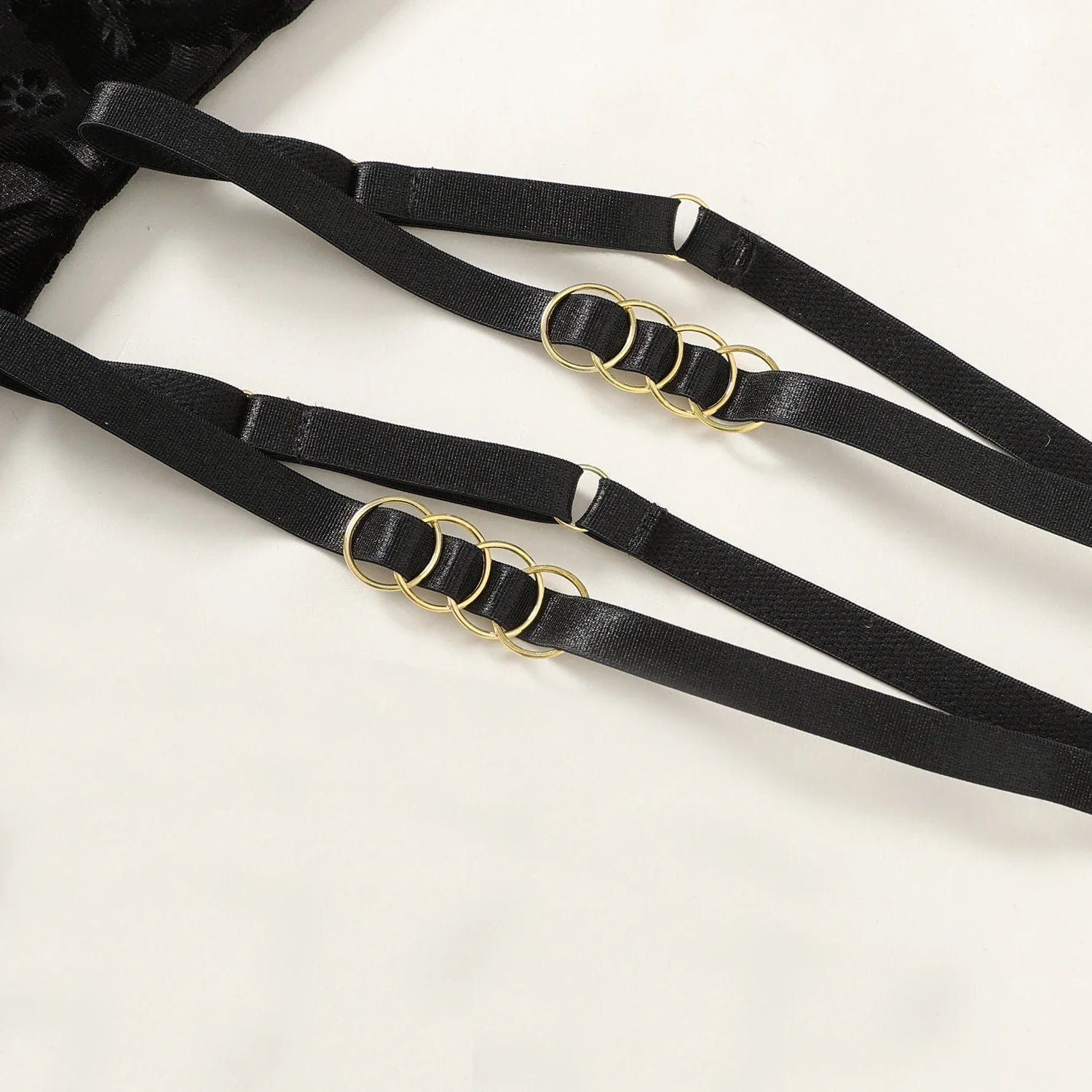 • Subtelne podwiązki z eleganckimi złotymi detalami