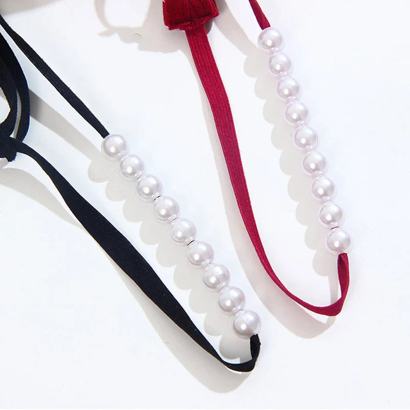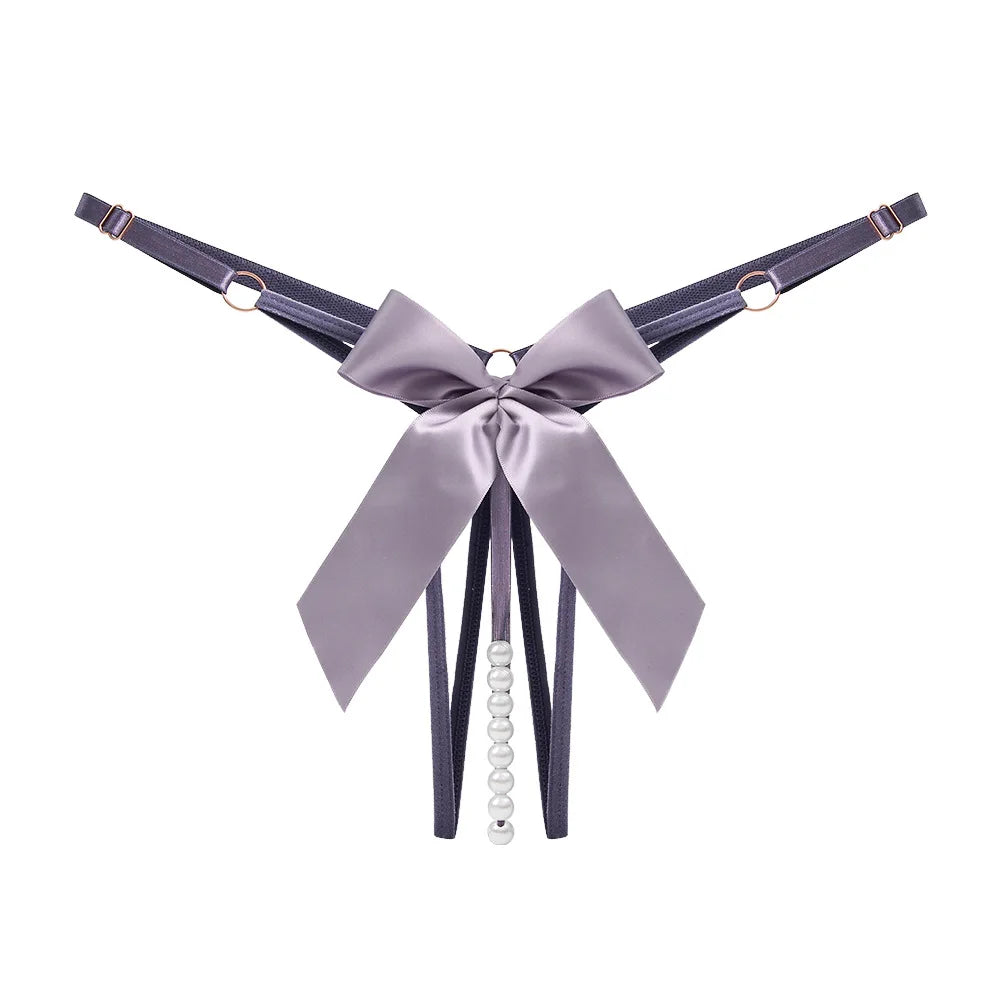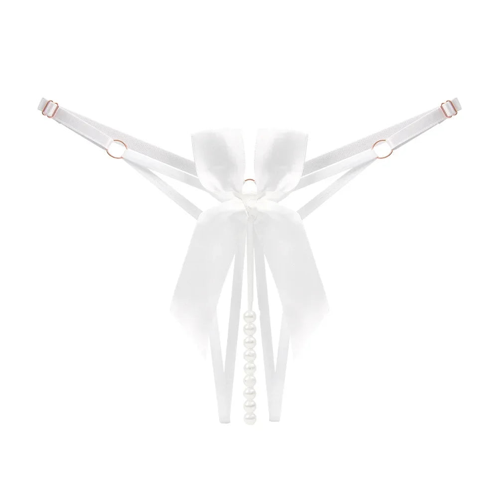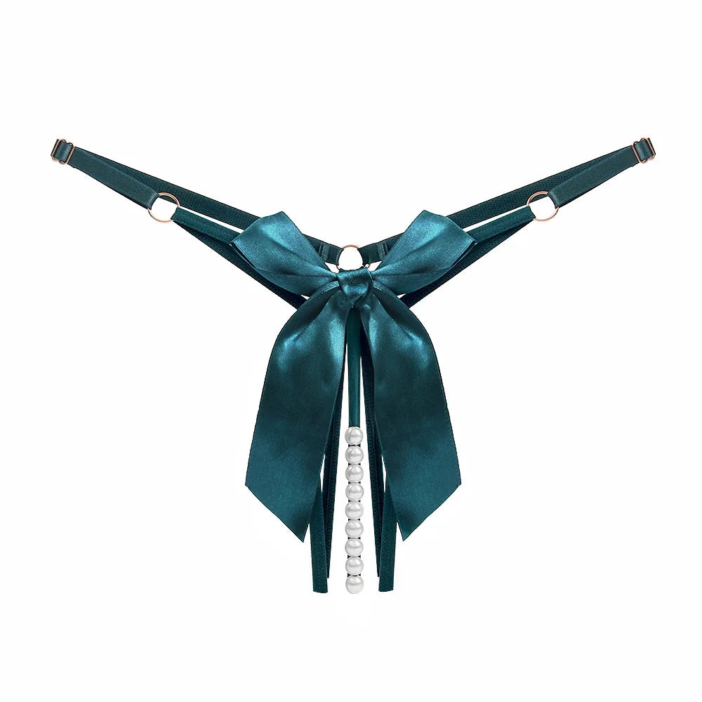 • Eleganckie majtki stringi z ozdobnymi perełkami w kroku